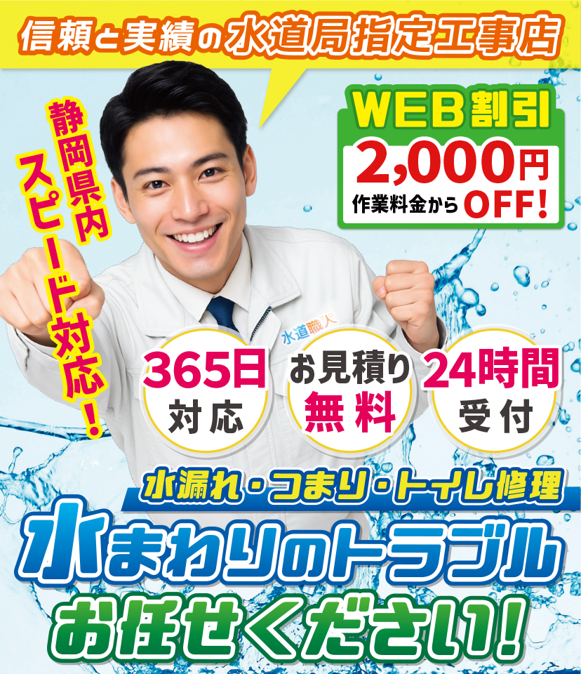 静岡の水回りトラブルは、いつでも「しずおか水道職人」にお任せください!