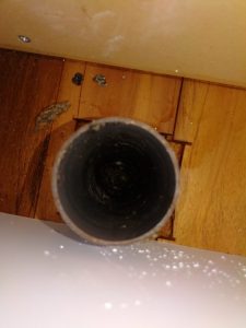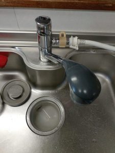 お伺いして点検させて頂きますと、数日前から台所の排水が悪く、奥様ご自身でワイヤーブラシの様な物を突っ込んでみたら、排水トラップが途中で抜けてしまったと仰っておりました。