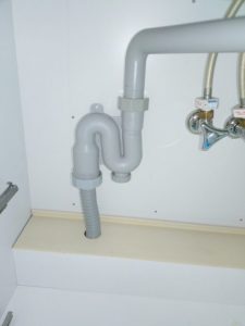 後は新品のジャバラホースを加工して取付け、排水トラップも元通り定位置に戻し、後は止水栓を開栓し、排水確認をします。