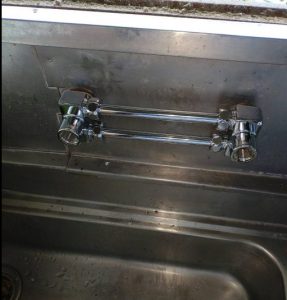 基本的には右側がで水、左側でお湯が出るのですが、こちらの台所蛇口は右側がお湯、左側が水と逆になっていました。