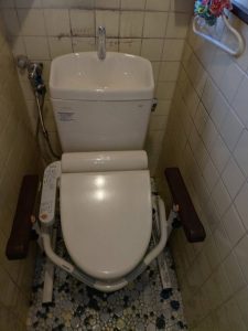 使い始めて50年前後経っているトイレのようで、夜に流すと音が大きいから気になる等のお悩みもあったようなので、これを機に節水トイレに交換をして水道代節約と音も気にせず使える様にしたいという事でトイレ交換工事のご依頼をいただきました。
