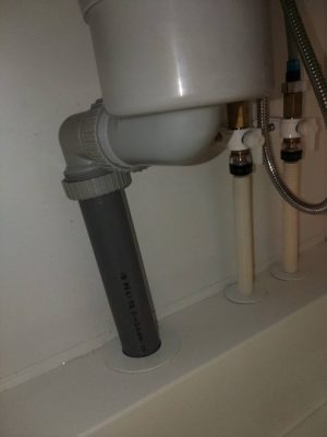 水は流れますが少し上がって来てしまうとのことでした。台所シンクの下の配管を外してみます。
