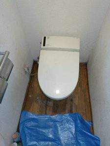 お客様からトイレの床が濡れているので見て欲しいとご連絡いただきました。早速、駆けつけます。