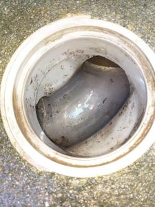 点検してみると排水管の中で詰まっている様子でした。糖尿病の薬を飲んでいると便の性質が変わって排水管にくっつきやすくなってしまい、くっついて取れなくなることでつまりの原因を引き起こす場合があります。