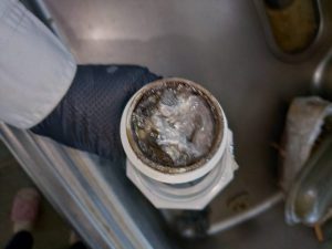 台所の水が流れないと連絡があり、急いで駆けつけました。到着して状況を確認してみると、お水が流れずシンクに水が溜まってしまっていました。