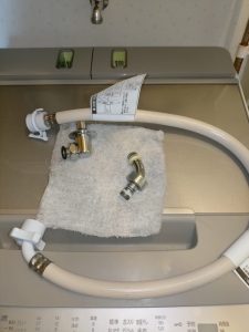 お客様に現状を説明し、今回は洗濯蛇口の交換を行いました。
