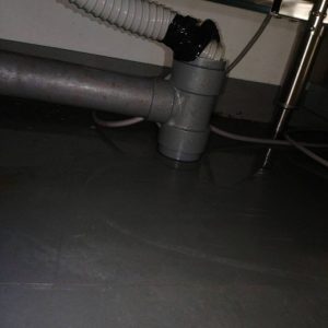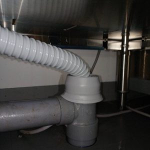 台所排水の水漏れとご依頼を頂き伺いました。近日開店されるお店のキッチンの排水ホースが取付不備により水漏れしてしまうとの事でした。