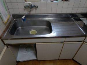 収納棚も水を吸って朽ちてきていた為、ブロックキッチン交換とさせていただきました。
