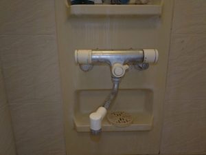【作業前の状況】浴室サーモスタット混合水栓のシャワーホースが切れた