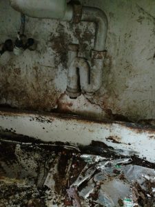 作業時には既にジャバラホースが外れていて、汚水が床下に流れ込んでしまっている状態です。