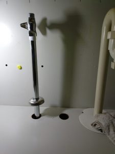 止水栓もやはり20年という経年劣化で、錆が結構目立っている様に見えます。洗面蛇口と止水栓を慎重に外して行きます。