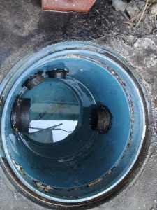 到着して状況を確認してみると確かに排水が溢れていました。色々調べてみたところ、どうやら排水枡が詰まってしまい溢れている状態でした。