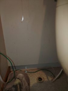 到着して状況を確認してみるとタオルが敷いてあり、水漏れの跡が確認できました。どうやら止水栓から水漏れを起こしていたようです。