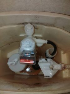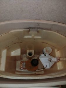 水が溜まっているにも関わらず、浮き玉が上がりきらず水が流れていることが原因でした。使用年数も20年ほどとのことでしたので、部品の寿命かと思われます。