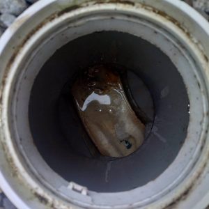 流れ終わった後にゴボゴボ音がしていた為、排水桝の方へ行ってみると…