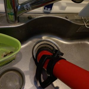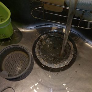 台所排水がつまってしまったとご依頼を頂き伺いました。水を流すとすぐに水が溜まってしまい、なくなるまで時間がかかる状態でした。
