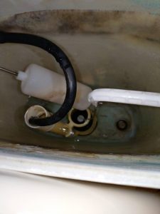 到着して状況を確認してみると、フロートゴムからの水漏れがありました。長く使用していると経年劣化でフロートゴムが溶け出し、お水を止めることができなくなって水が便器へ漏れてきてしまいます。