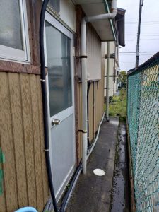 調べてみると屋外の給湯管が破損し、お湯が漏れ出していることが分かったとのこと。ご自身でテープ補修を行ったがほとんど意味がなく、しっかりと直して欲しいとご依頼頂きました。早速点検していきます!