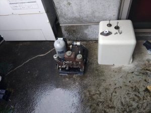 ポンプが壊れてしまったと入電があり、急いで駆けつけました。到着して状況を確認してみると、どうやら三階へ水を上げている加圧ポンプが故障してしまったようです。