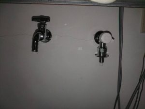 片方はよく使用するので洗濯用の蛇口、もう一つは汚れが酷いときにつがうためめったに使わず普通の蛇口を取り付けになります。