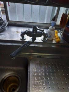 そのため、今回は部品の交換、台付2つ穴の水栓への交換、今のような壁付きタイプでの交換の3パターンの提案と見積もりの提示をさせていただきました。