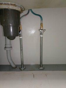 取り外し、止水栓を新しいものに交換いたしました。蛇口も取り付けていきます。