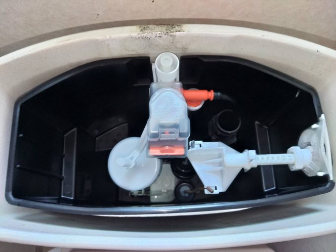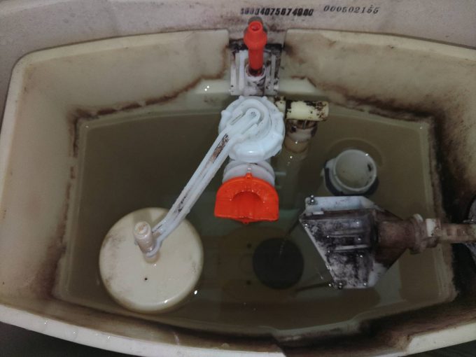 水がチョロチョロと止まらないという症状でした。内部タンクも汚れていて、かなりの年月使い込まれています。