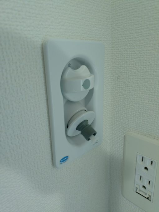 古い蛇口からポリブデン管を切り離して、ポリブデン管が中に引き込まれない様に片手で掴みながら、新しい蛇口にポリブデン管を差し込み取り付けていきます。