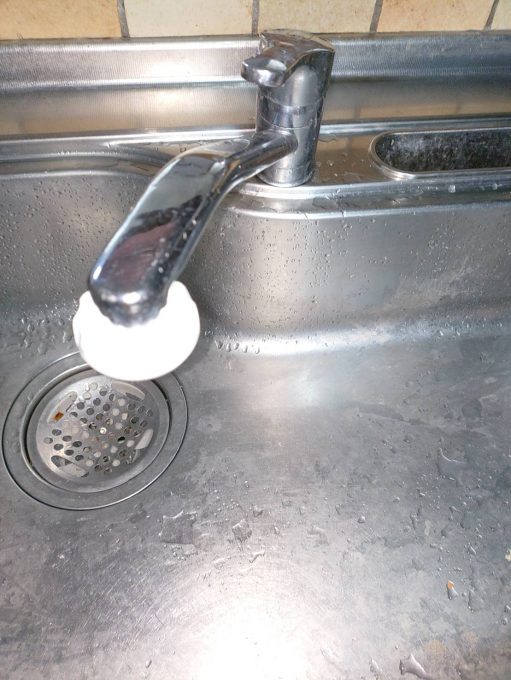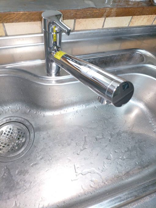 他にも経年劣化している箇所もあり、お客様も蛇口の交換を望まれたので浄水機能がついてホースが伸びるタイプの台所蛇口の交換をさせていただきました。