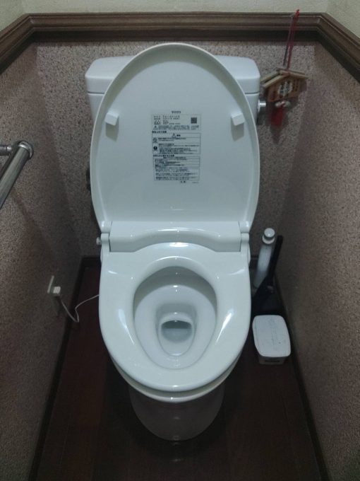 お客様とご相談した結果、この先直した箇所以外から水漏れしてくる可能性もあると不安なため、トイレ交換作業のご依頼を頂きました。また、ウォシュレットはほとんど使わないとのことでしたので、暖房便座を新たに設置することになりました。