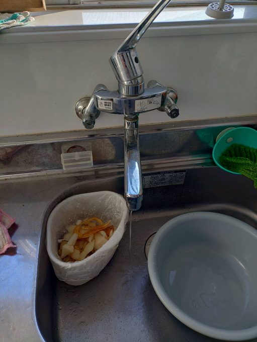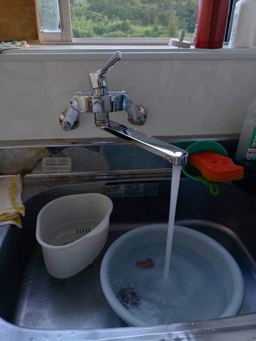 台所蛇口の水圧が弱いとのことでご依頼いただきました。確認させていただくと、お水の方だけ水圧が極端に弱い状態でした。