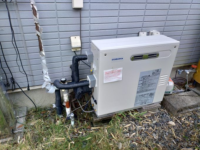 メーカーに問い合わせたところ、既に部品の供給が終了していることと、使用年数が10年以上である点から交換の一択となりました。お客様に現状をお伝えし、今回は給湯器の交換を行いました。