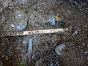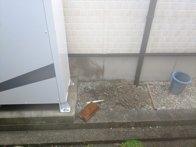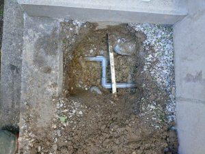 水漏れは給水管の継手からでした。家の基礎回りのコンクリートを少し削り、配管の接続部作業を行いました。