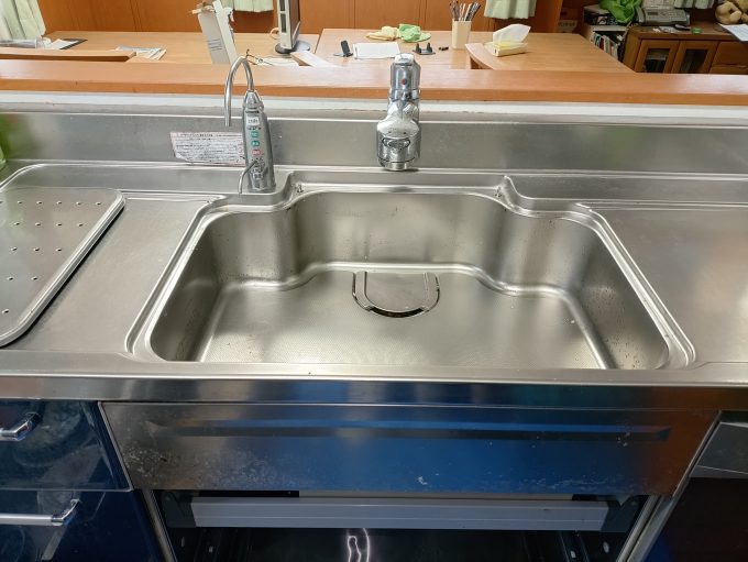現状をしっかり確認させて頂き、お客様と相談した結果、既存の蛇口は撤去し、シンク右側に新しい蛇口を新設するかたちになりました。