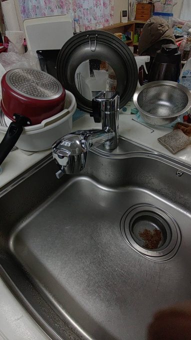 台所蛇口のカートリッジ不良によりレバーハンドルも故障し、水漏れが止まらない状態でした。お客様ご自身で色々試されたとの事でしたが、やはり水漏れが止まらず、ご依頼頂きました。
