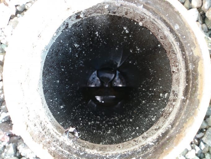 作業内容は、台所排水の詰まり除去作業の際、宅内側からスパッドを使用して油脂類を屋外の排水管へ押し出しており、そのまま排水管内に汚れを放置すると排水管自体の詰まりにつながる恐れがあるため、排水管の高圧洗浄作業を行わせていただきました。