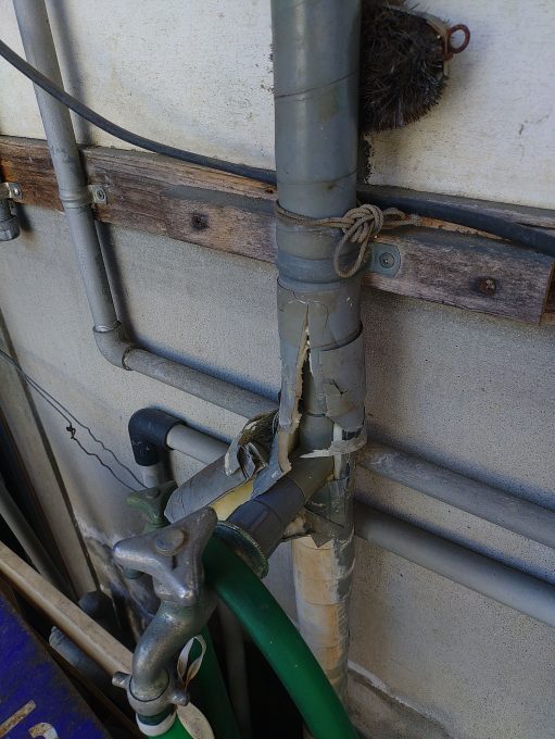 今回は築40年の戸建て住宅になります。今回の検針で水道代がかなりあがっていることを指摘され、宅内外を点検したところ、屋外給水管から水漏れしていることがわかったそうです。