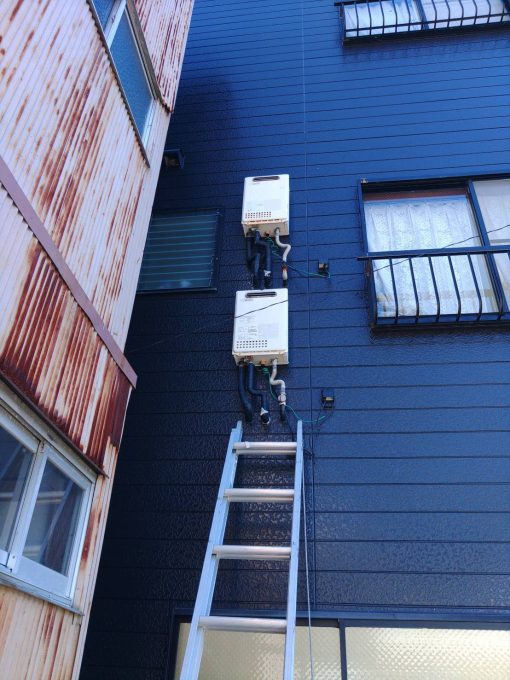 お客様と相談し、三階と二階の給湯器の交換することとなりました。