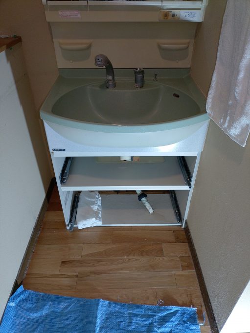 作業内容は使用年数からも現状の状態からしても、新しい洗面化粧台への交換のほうが適切と判断し、お客様へご提案させて頂き、新しい洗面化粧台への交換作業をご依頼いただきました。