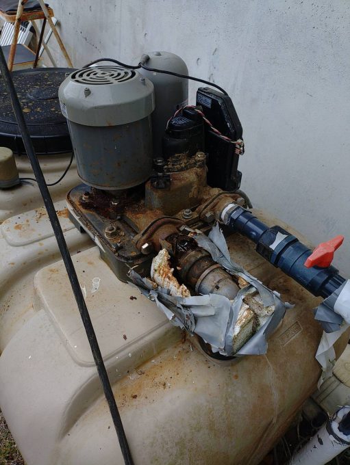 点検をすると、ポンプの吸い込みの配管が割れていたり、ポンプの錆も多く見受けられた為、適応機種2機種で見積を作り、ご提案させて頂きました。