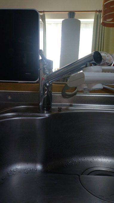 台所蛇口水漏れのご依頼で伺いました。レバーハンドルから水漏れして1週間程経過し、症状が酷くなってきたとの事でした。
