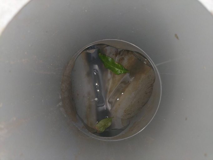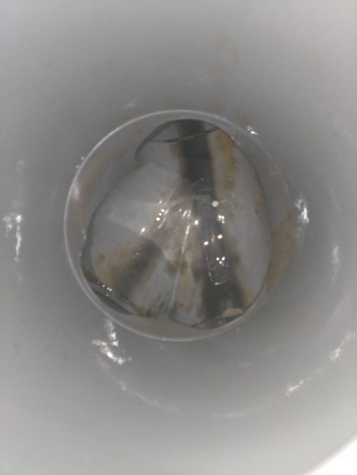 洗浄作業を行っていると、トイレ交換をした際に落としてしまったであろう配管の端が出てきました。それが原因で詰まってしまっていたようです。