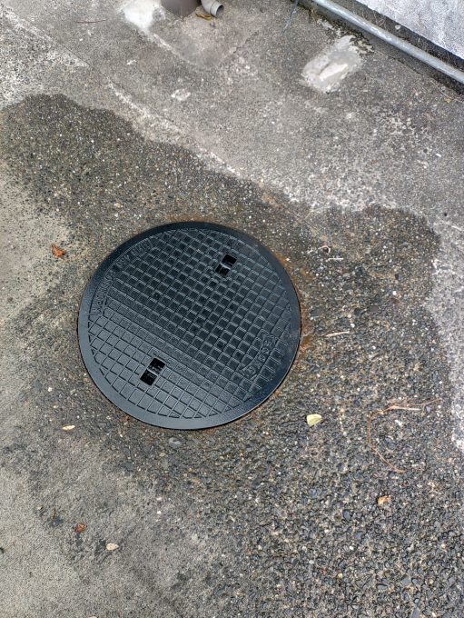 今回は築30年程の戸建て住宅になります。昨日車両を駐車場に入れた際、浄化槽のマンホールが破損してしまったとのことです。